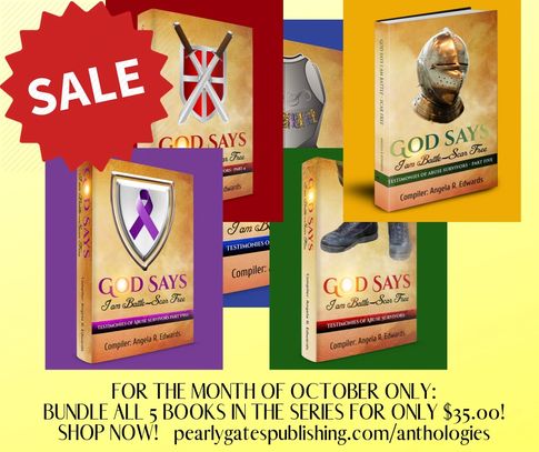 October is Domestic Violence Awareness Month. Survivors share their testimonies in this 5-volume set. OVER 75 UNIQUE STORIES AND POEMS! Buy a set for yourself AND as a gift for others! Books make a GREAT gift for the holidays!